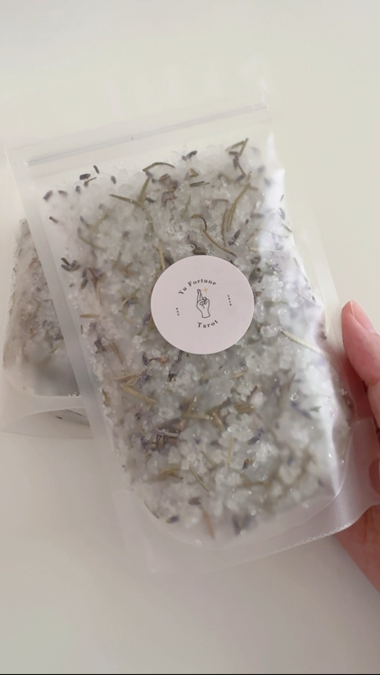 我分裝一些自己平常儲備的粗鹽加上草藥、精油製成淨化鹽